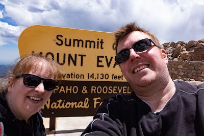 Today we drove from Denver to the top of Mount Evans, which is over 14,000ft above sea level. We managed to walk the last small part to the top, but at that altitude even a fairly modest bit of walking gets the heart pounding, and feelings of light-headedness. The sun is very strong at that altitude too.